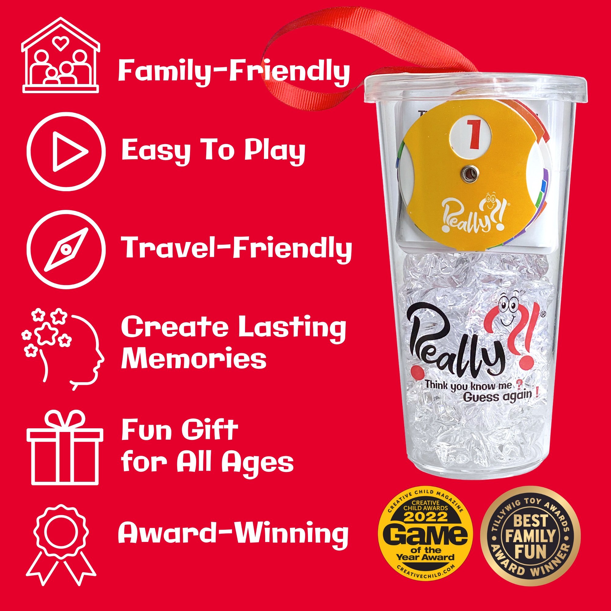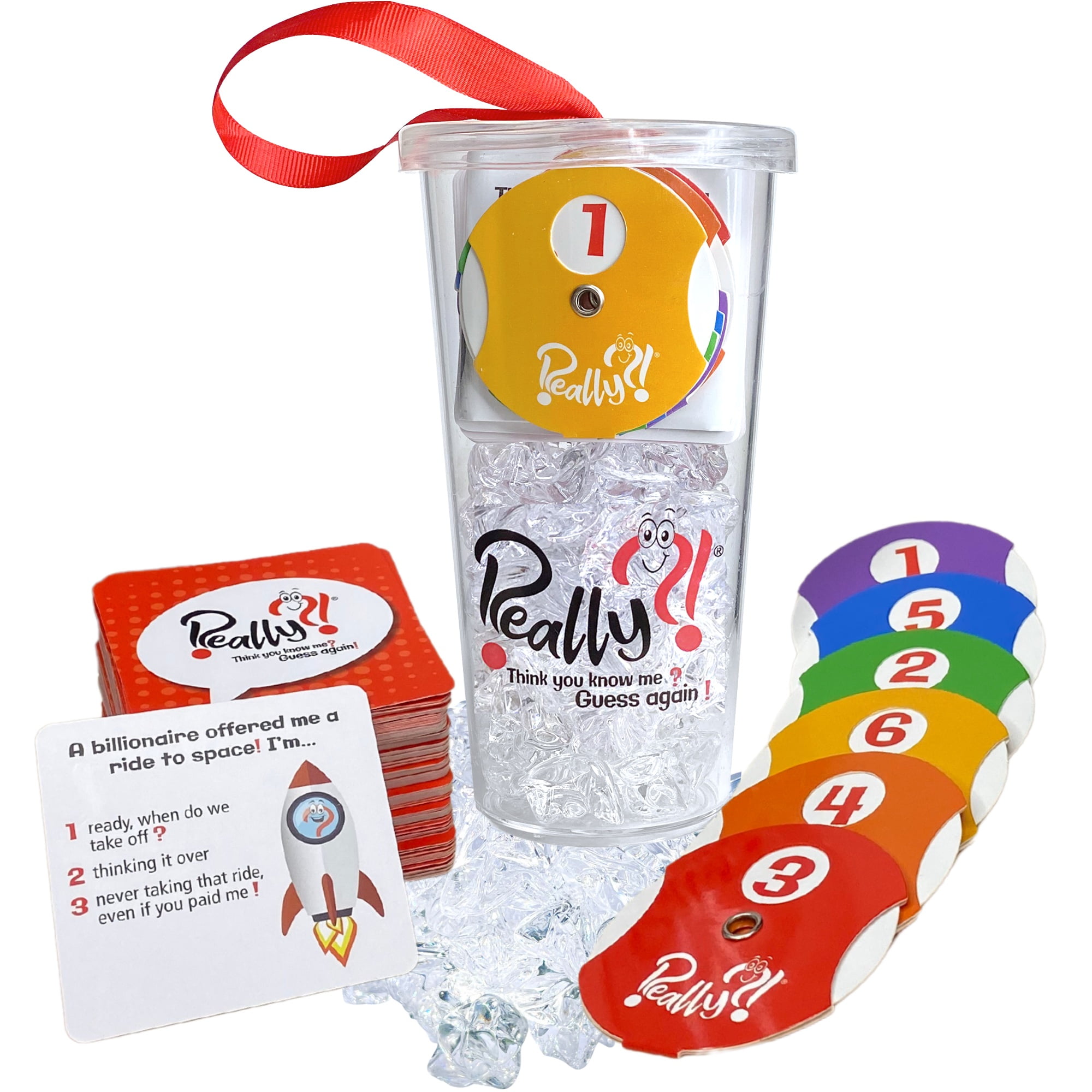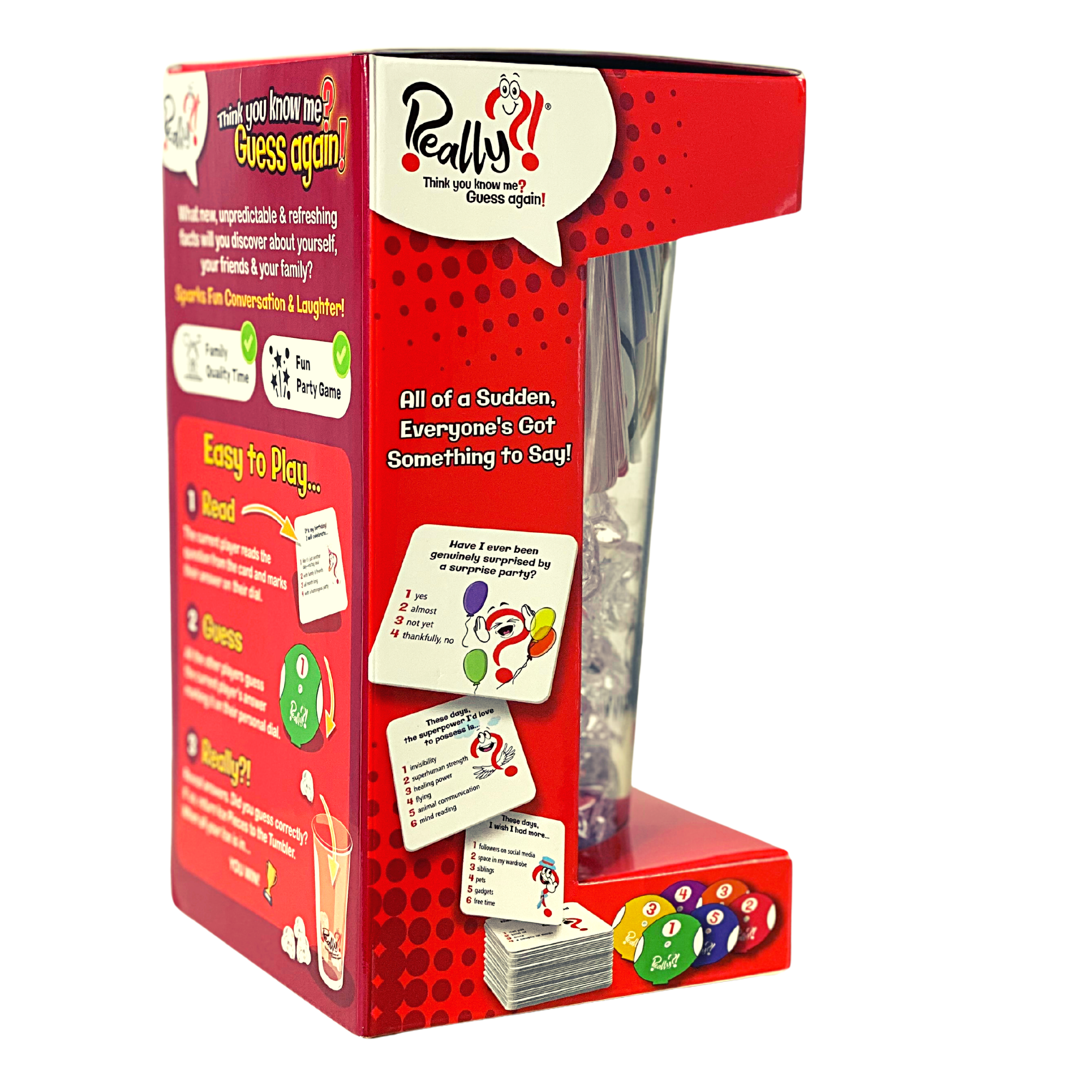 Really?! Think you know me? Guess again! is designed for players aged 8 and up kids and adults. It’s a great way for families, friends and colleagues to engage in meaningful and fun conversations and make unforgettable memories together.